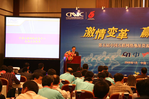 中國(guó)互聯(lián)網(wǎng)絡(luò)信息中心(CNNIC)主任毛偉在會(huì)上做了總結(jié)匯報(bào)。毛偉主任回顧了2007年CNNIC在系統(tǒng)運(yùn)維、技術(shù)創(chuàng)新、客戶服務(wù)、業(yè)務(wù)推廣、行業(yè)自律等方面所取得的成績(jī)。截止至2007年12月底,CN域名注冊(cè)量突破900萬個(gè),大幅超越國(guó)內(nèi).COM域名注冊(cè)量,穩(wěn)居國(guó)家頂級(jí)域名世界第二。和去年同期相比,增長(zhǎng)了400%,相當(dāng)于全年每天新增2萬個(gè)CN域名,CN域名作為中國(guó)互聯(lián)網(wǎng)主流域名的地位得到進(jìn)一步鞏固。